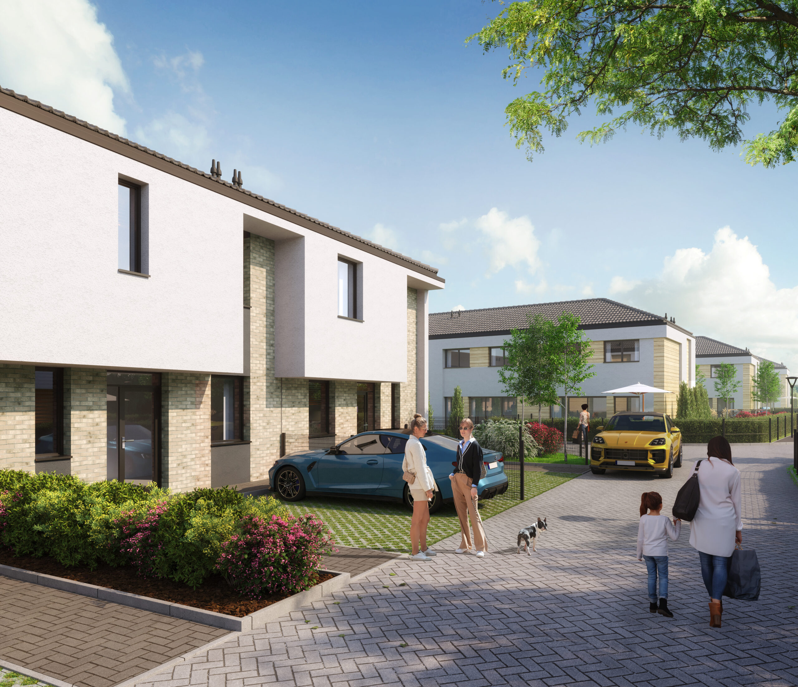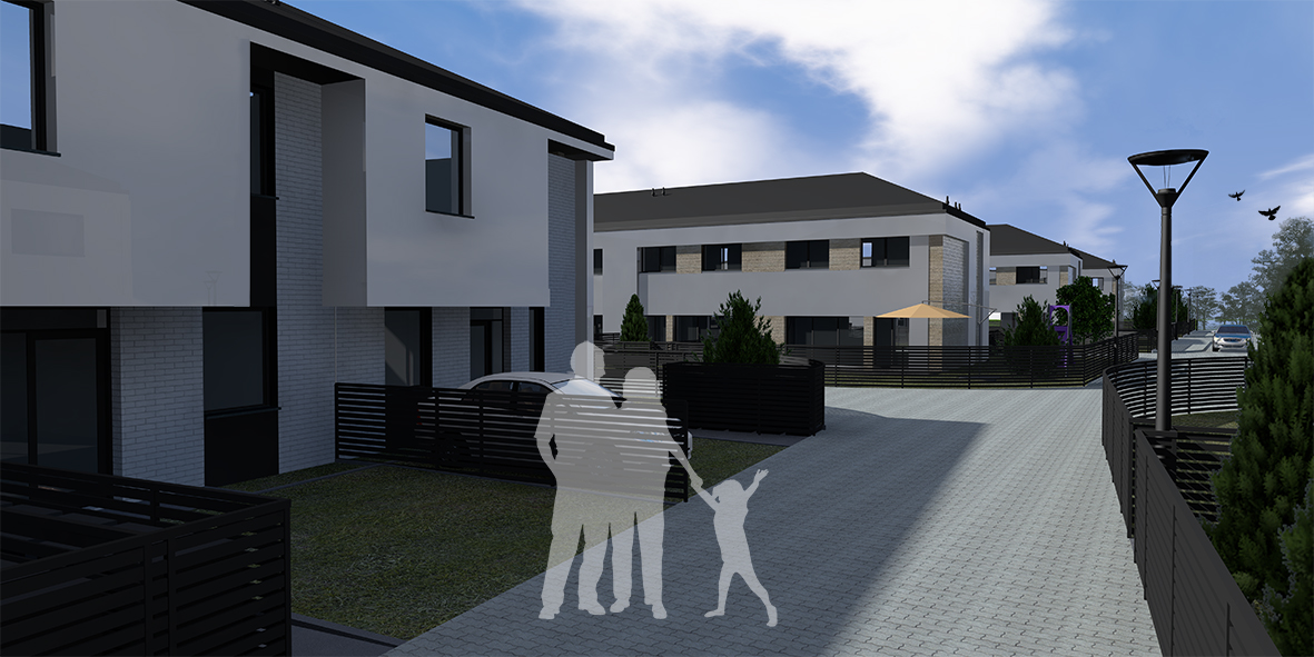 - osiedle zamknięte – bezpieczne, z drogą wewnętrzną i oświetleniem,