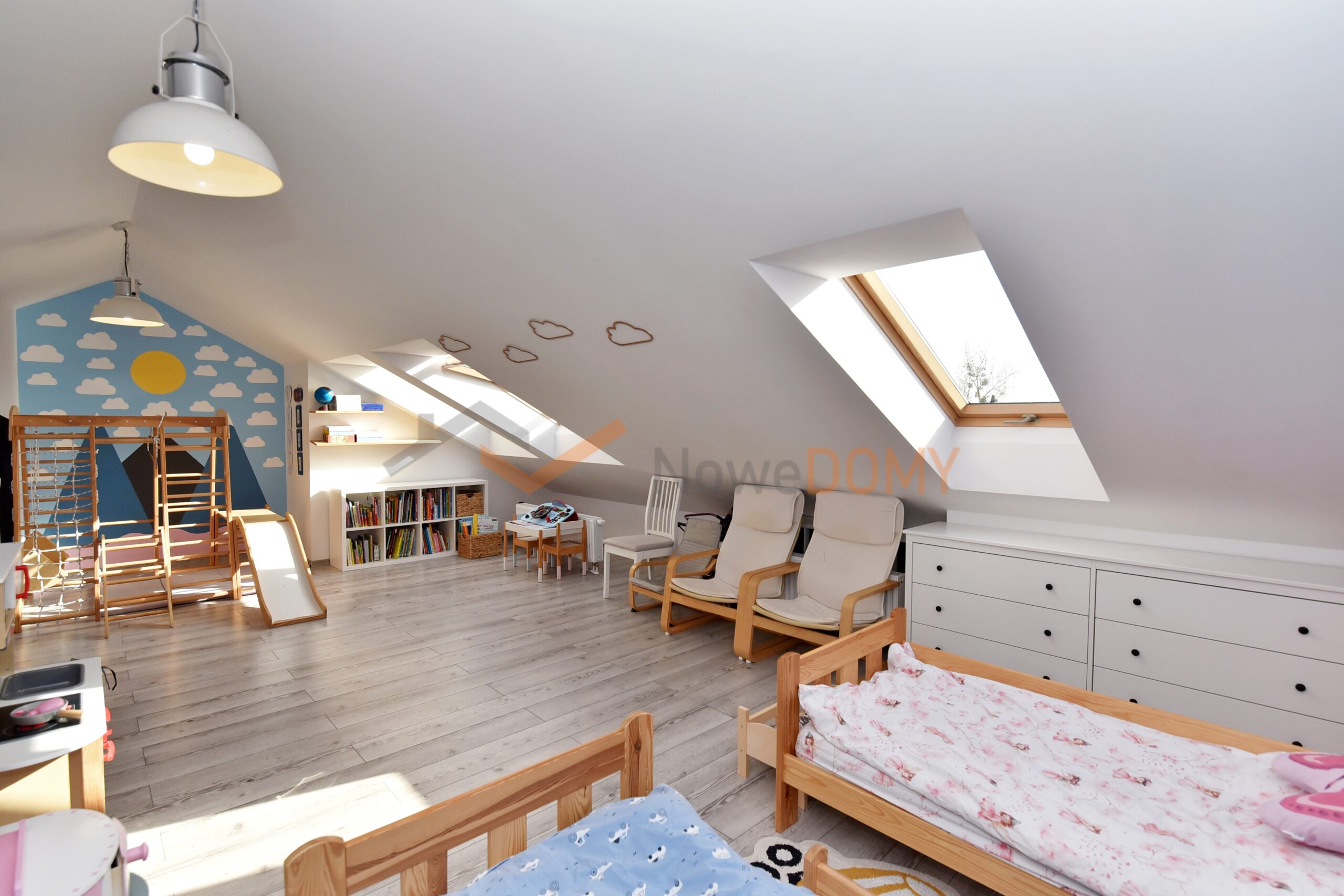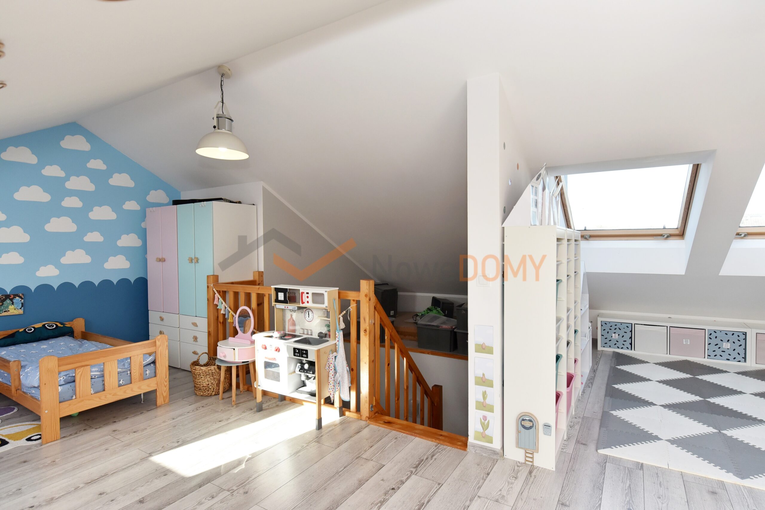 - funkcjonalny, przemyślany układ pomieszczeń dający komfort użytkowania; na pierwszym poziomie znajduje się salon z aneksem kuchennym i wyjściem na balkon, duży pokój, łazienka z prysznicem i przestronny przedpokój ze schodami na dużą antresolę, gdzie obecnie znajduje się pokój dziecięcy; wielkość mieszkania po podłodze wynosi ok. 104 m2,
