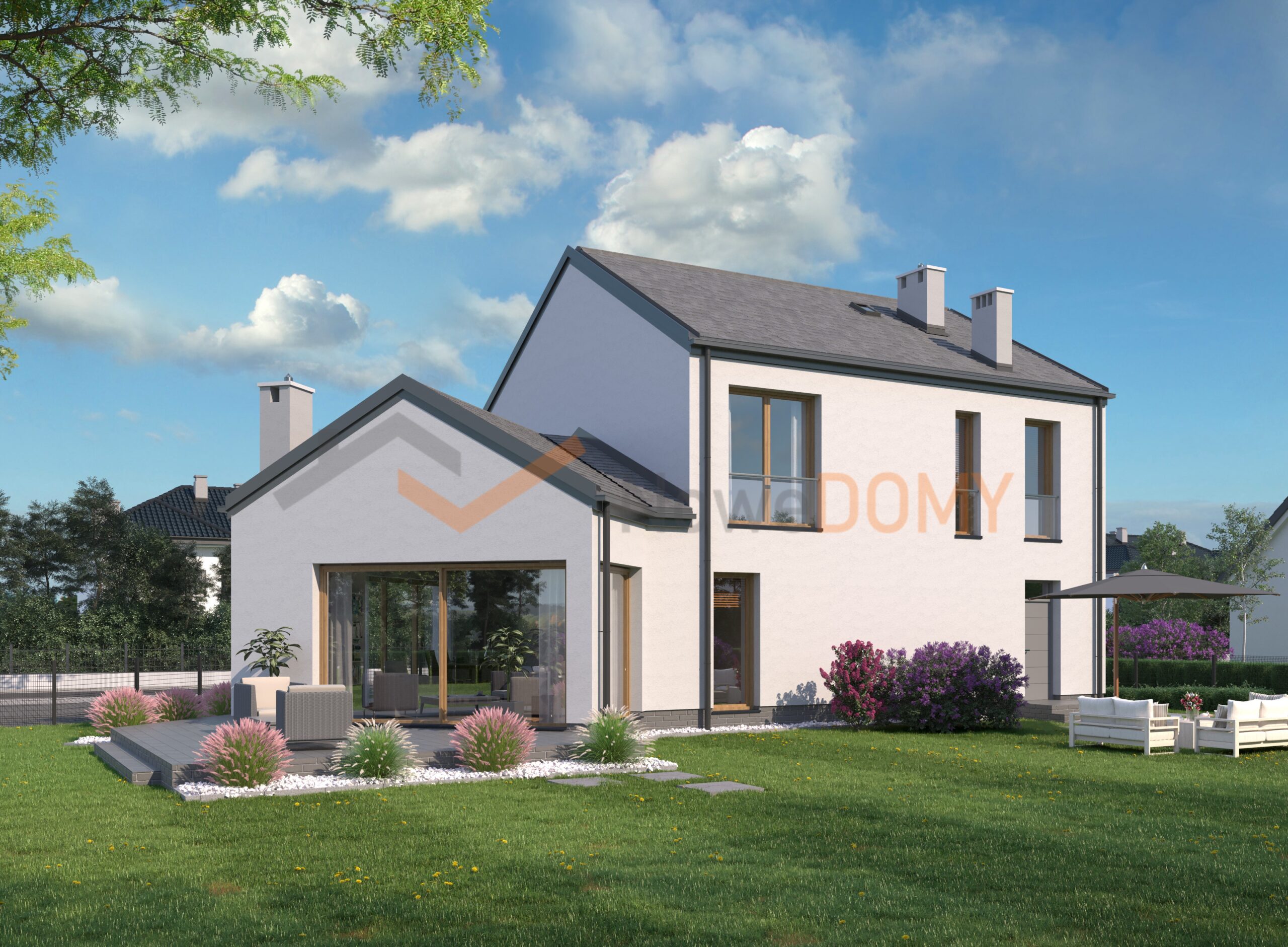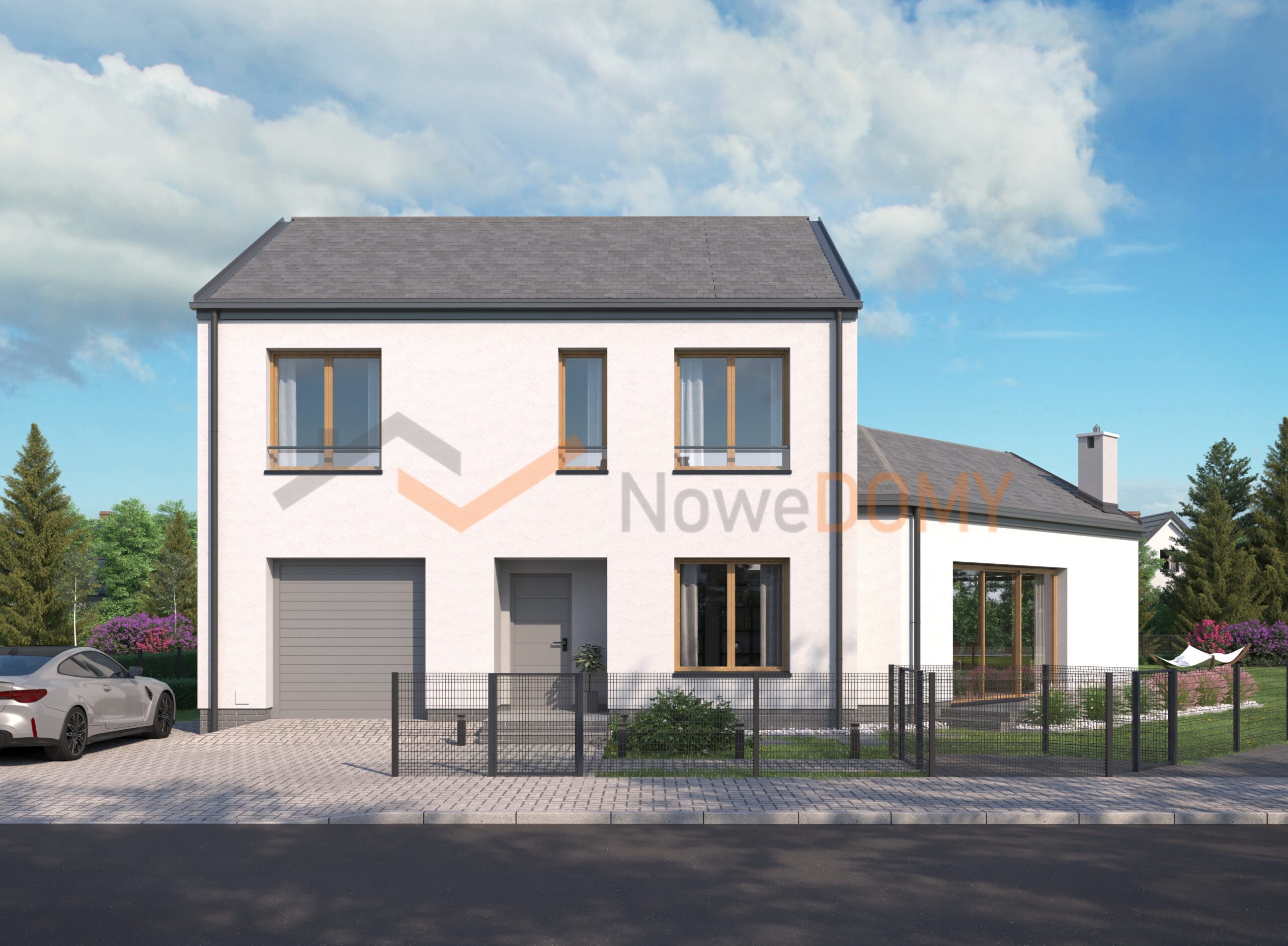 Nowoczesny dom jednorodzinny 168,56 m2 z garażem i atrakcyjnym ogrodem, posiada wiele zalet, z których najważniejsze to:
