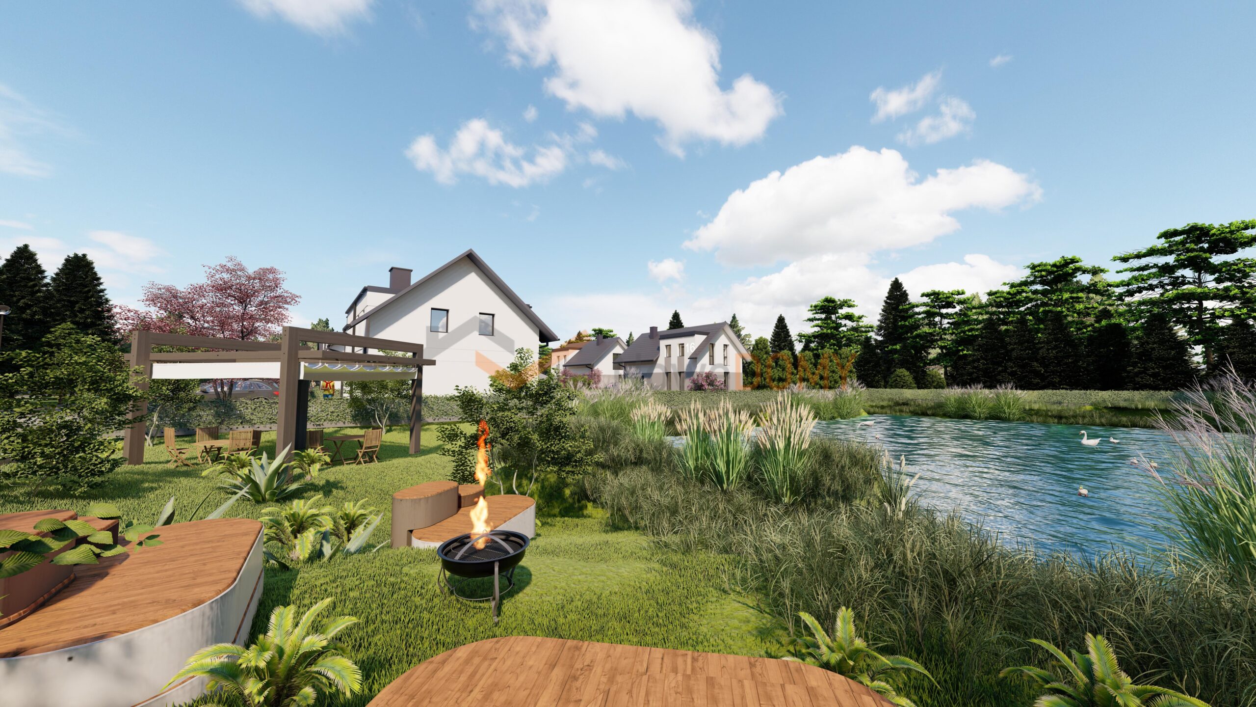 - oczko wodne z miejscem do wypoczynku na terenie osiedla,