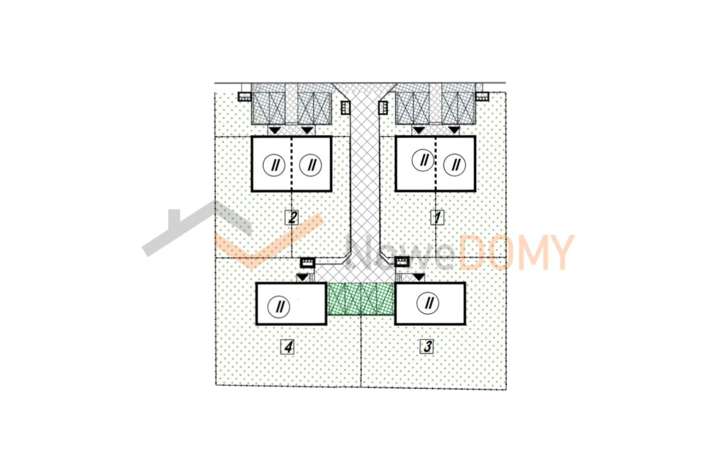 - ogrody od strony południowej, na działkach 243 m2 – 472,7 m2,