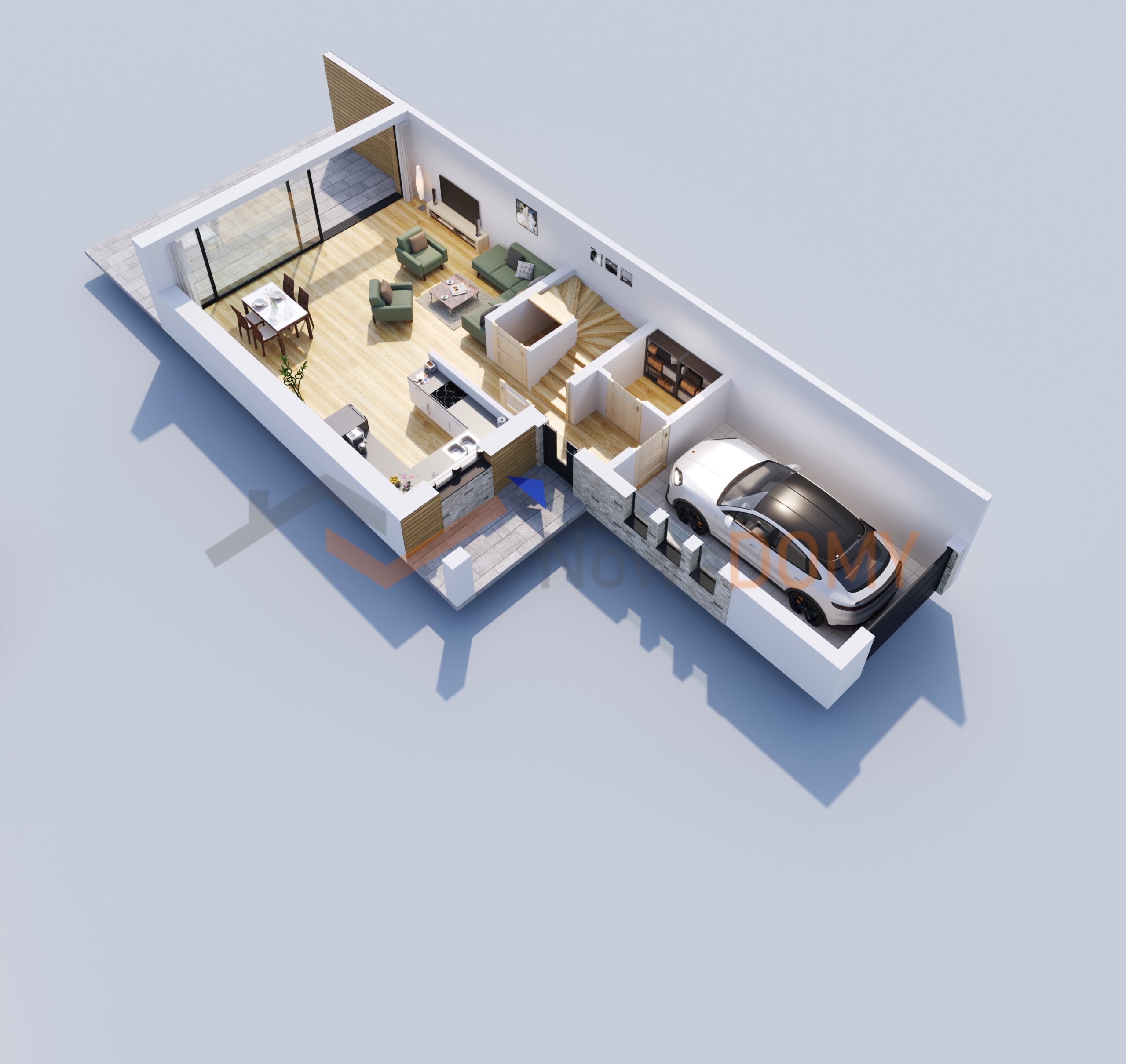 - garaż w bryle budynku,
