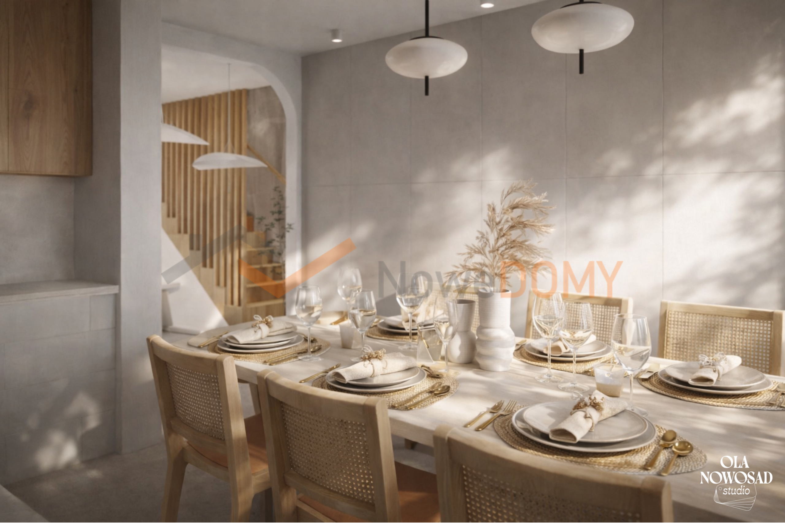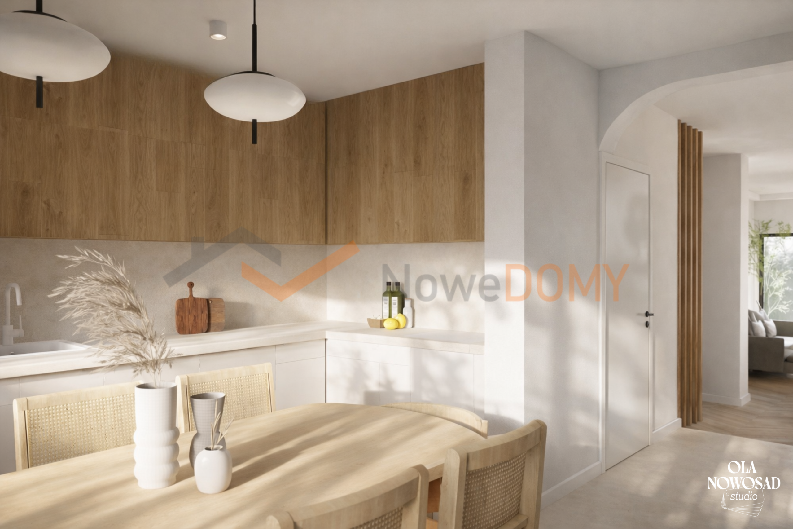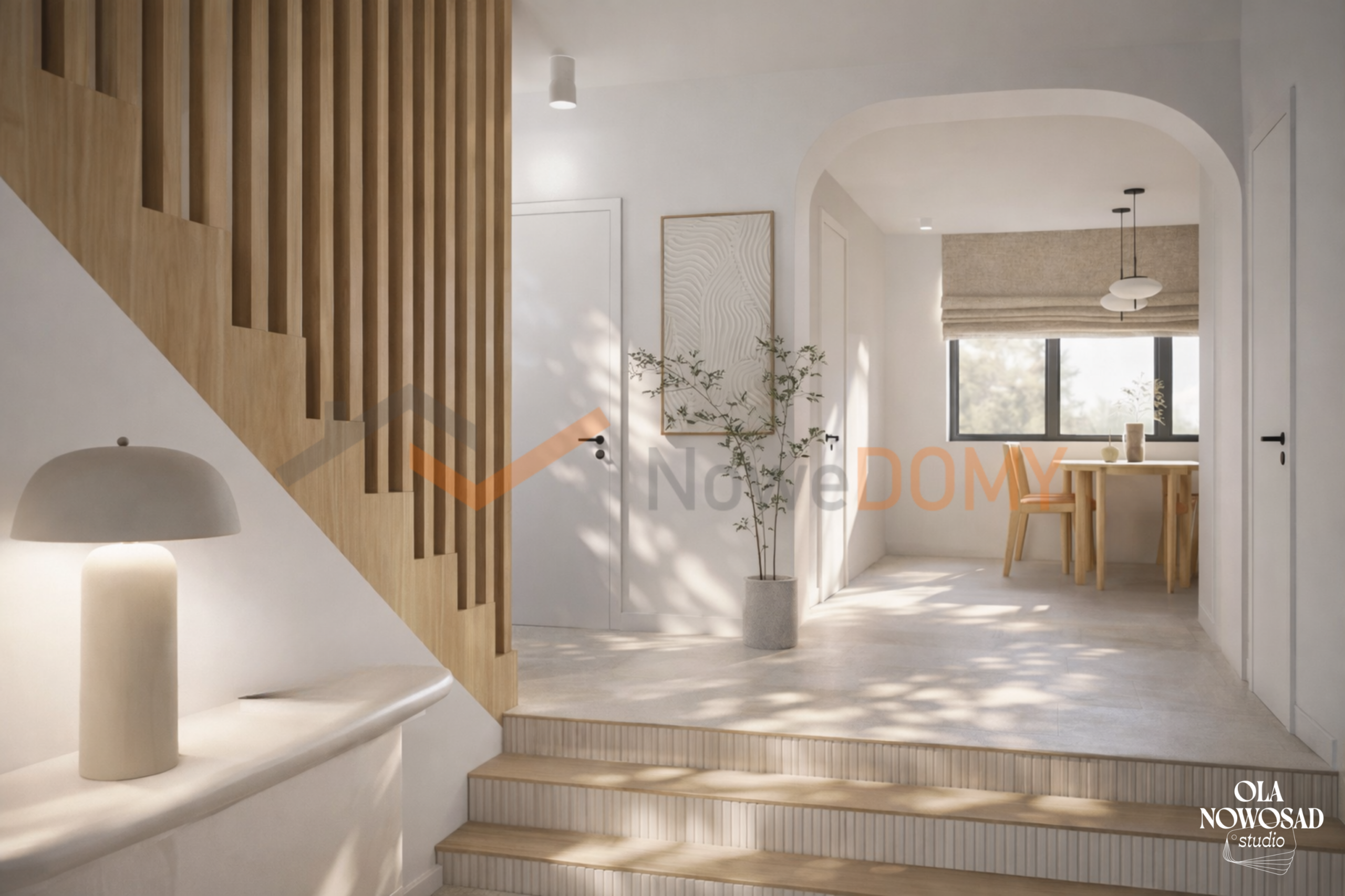 - architektura – nowoczesna bryła z dużymi przeszkleniami, kolorystyka utrzymana w bieli, beżu i szarości,